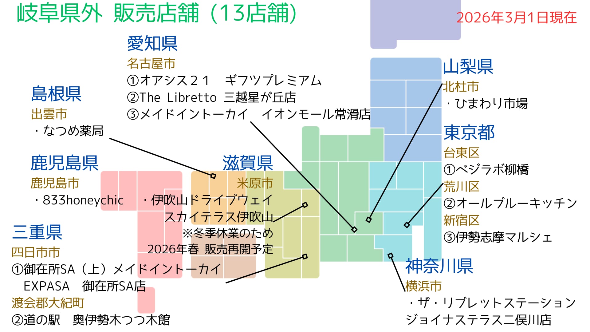 41店舗(岐阜県内28県外13)で、「はちみつ王国」の商品を販売中!