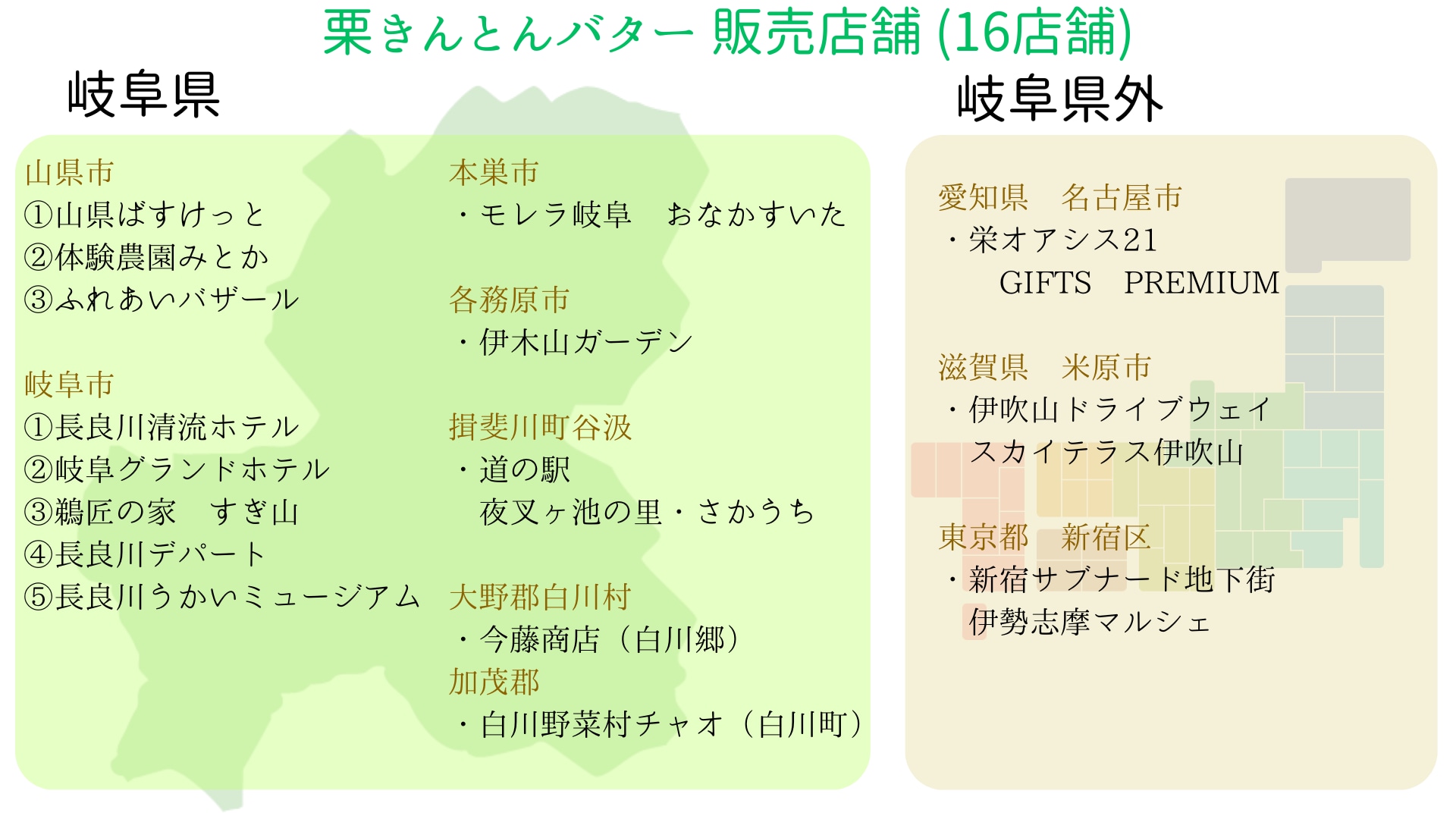 道の駅、ホテル、産直市場など16店舗で「栗きんとんバター」販売中です!