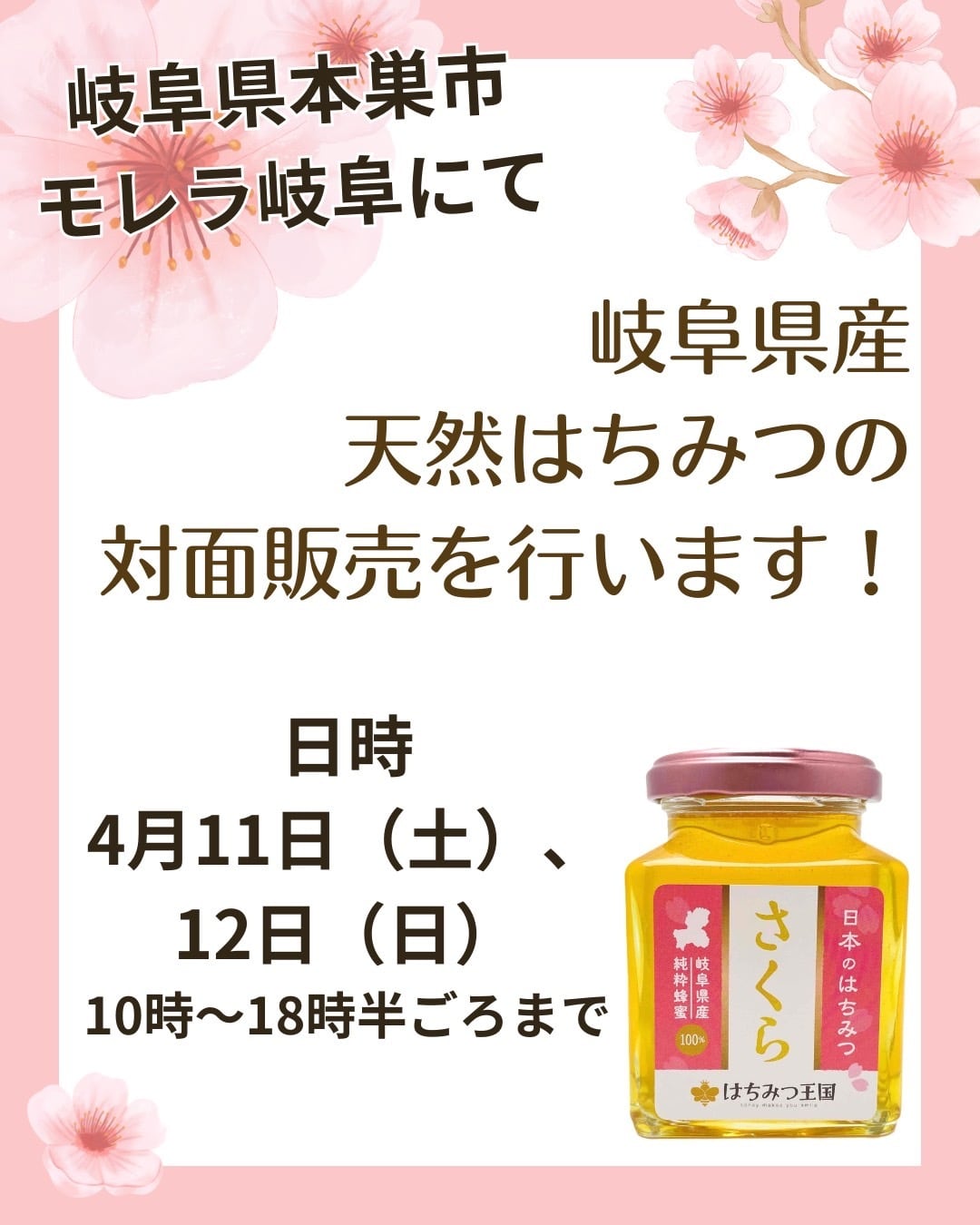 岐阜県本巣市のショッピングモール「モレラ岐阜」にて蜂蜜の対面販売を行います。